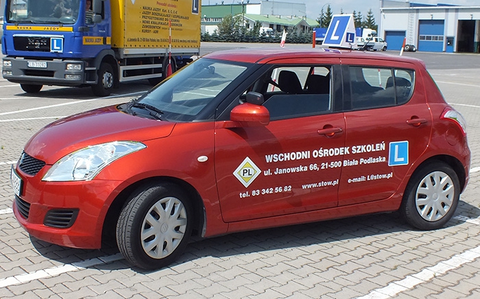 - W naszym ośrodku jazdy odbywają się na samochodach Suzuki Swift (wyposażonych w klimatyzację).